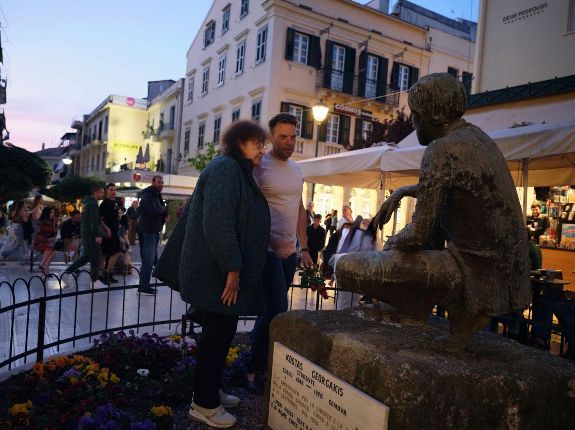 Με βαθιά συγκίνηση άφησα μερικά λουλούδια στο μνημείο του Κώστα Γεωργάκη στην Κέρκυρα, μαζί με την αδερφή του την Κατερίνα.