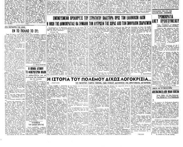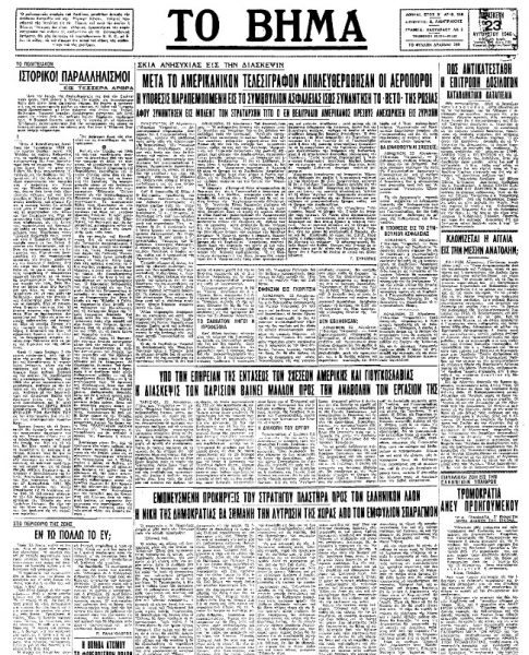 Όταν παρήλθεν η περιπέτεια της ψευδούς ειδήσεως από τον Άγιον Φραγκίσκον (σ.σ. στη διεθνή διάσκεψη του Σαν Φρανσίσκο είχε κυκλοφορήσει τις ημέρες εκείνες του Απριλίου του 1945 η φήμη ότι επρόκειτο να αναγγελθεί επισήμως η συνθηκολόγηση του Τρίτου Ράιχ) περί συνθηκολογήσεως της Γερμανίας, ήλπισα ότι θα εφθάναμεν εις το τέλος του πολέμου χωρίς καμμίαν άλλην μεγάλην ανωμαλίαν. Αλλ’ η ελπίς μου διεψεύσθη, διότι επηκολούθησεν η μεγαλύτερη ειδησεογραφική περιπέτεια του πολέμου. Ιδού τι συνέβη.