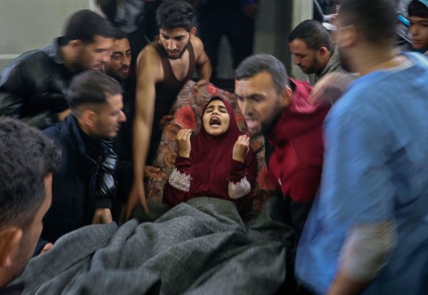 Μια νεαρή τραυματισμένη Παλαιστίνια φωνάζει «Ya Allah» («Ω, Θεέ μου!») καθώς μεταφέρεται με φορείο στο νοσοκομείο Νάσερ, μετά από ισραηλινά πλήγματα στο σχολείο Μα’αν, εν μέσω της σύγκρουσης μεταξύ Ισραήλ και Χαμάς, στο Χαν Γιουνίς, στη νότια Λωρίδα της Γάζας, 5 Δεκεμβρίου 2023. REUTERS/Ibraheem Abu Mustafa