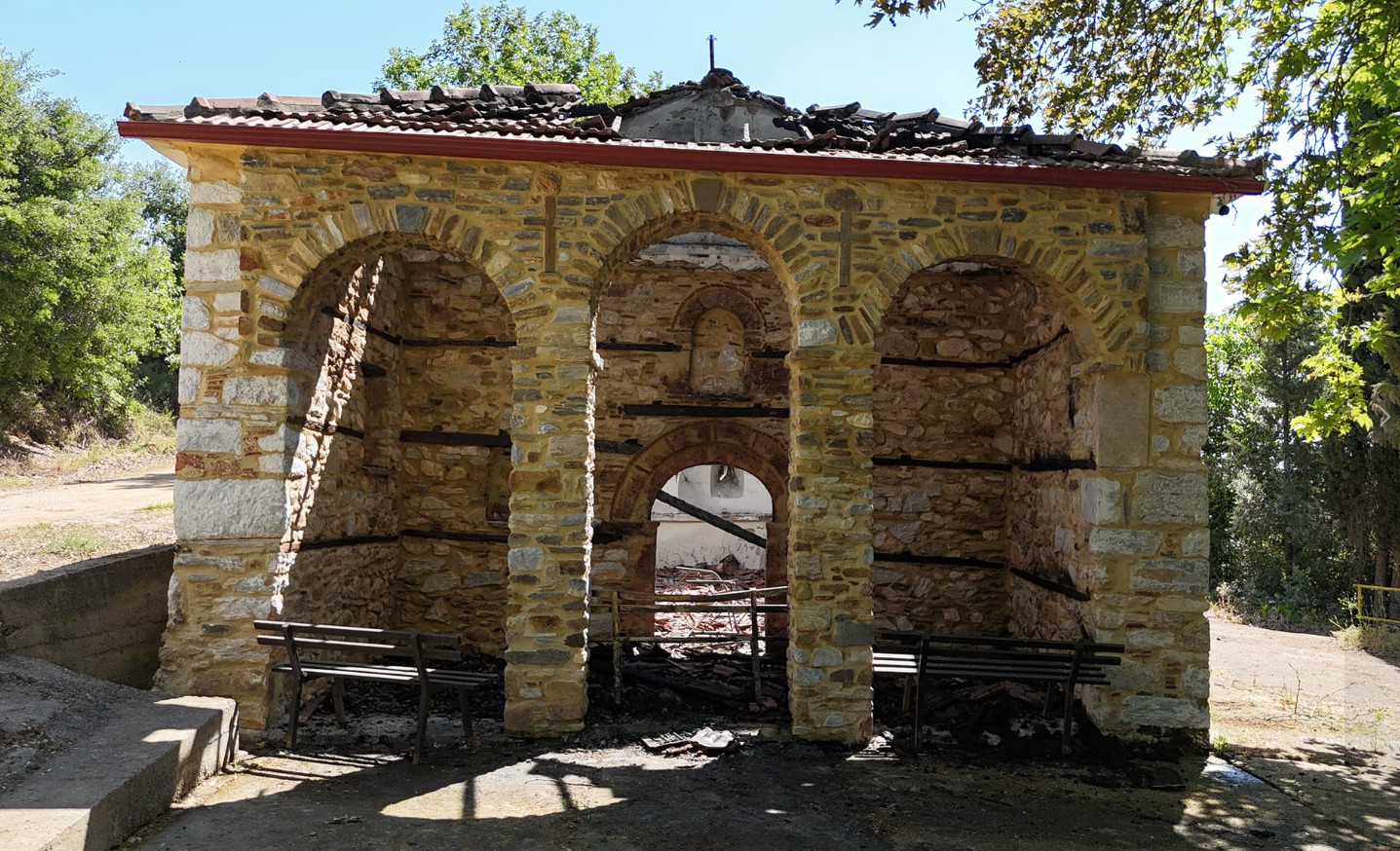 Θα ξεκινήσουν διαδικασίες αναστήλωσης του εξωκλησιού που καταστράφηκε ολοσχερώς από τη φωτιά.