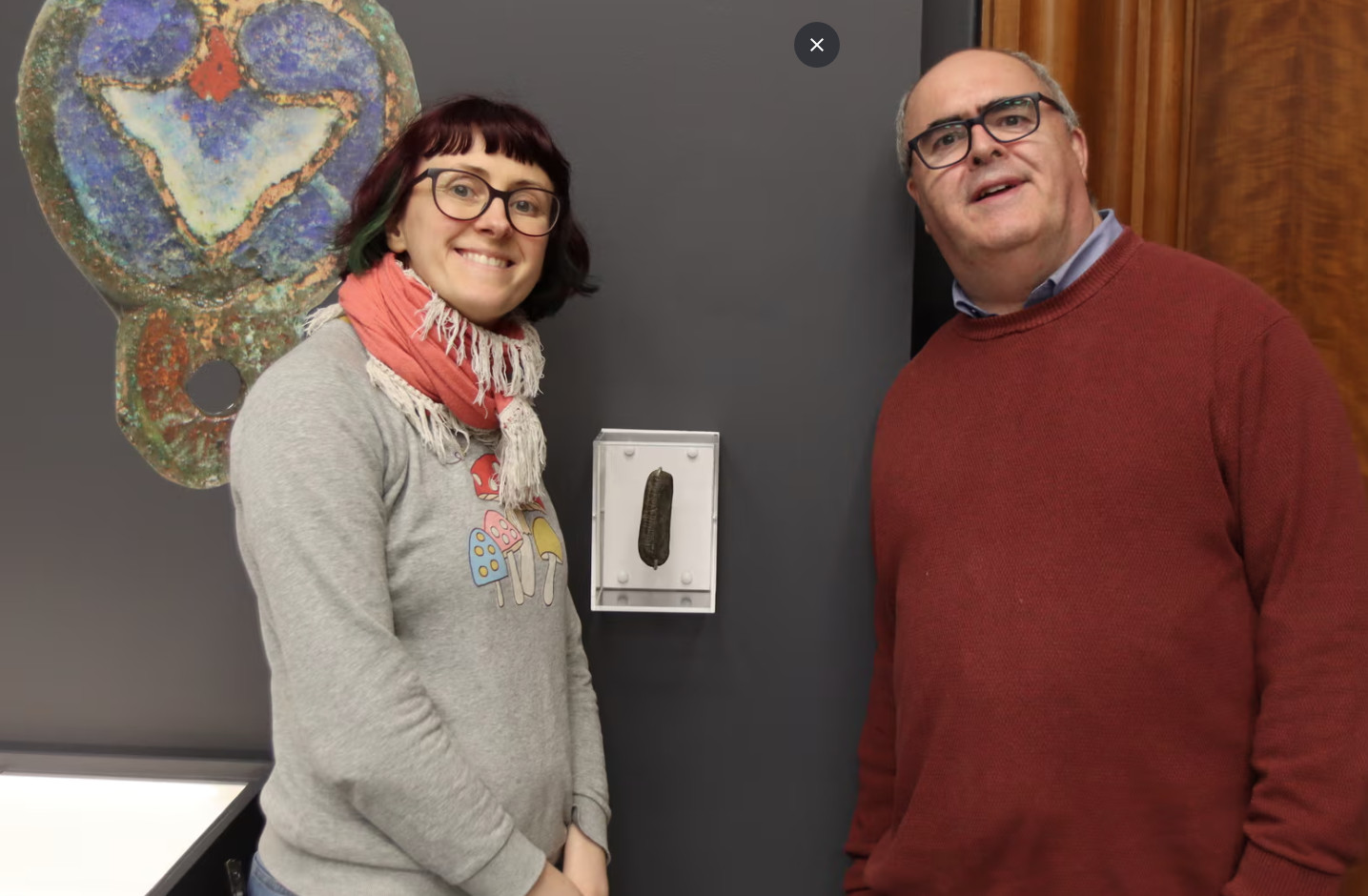 Ο Γκράχαμ Σένιορ, ο καθηγητής που βρήκε την πέτρα, με την Άλι Γουέλς, επιμελήτρια εκθέσεων στην Herbert Art Gallery and Museum στο Κόβεντρι. Πηγή φωτό: The Herbert Art Gallery and Museum