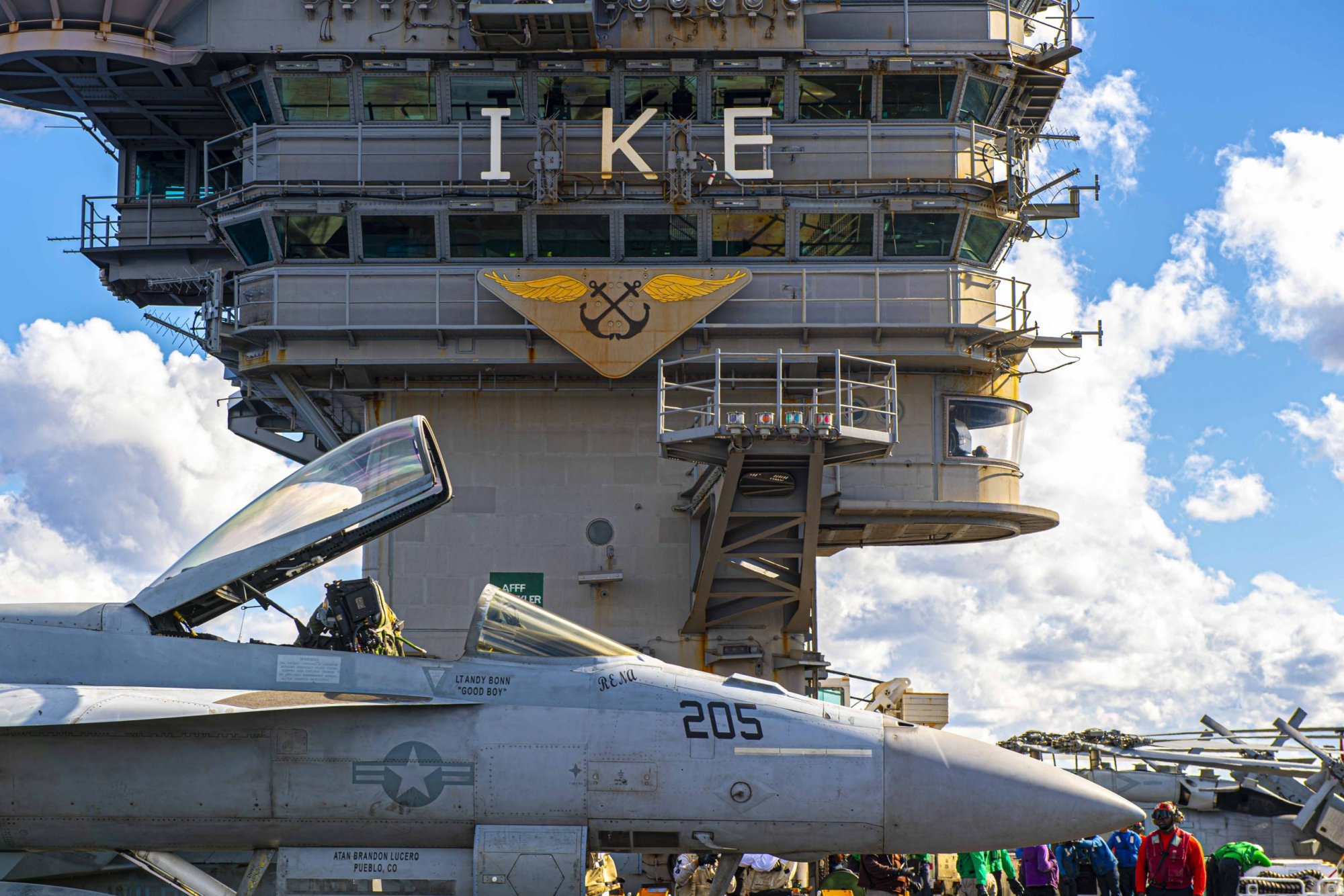 Το USS Dwight D. Eisenhower έφυγε από την Ερυθρά Θάλασσα τον περασμένο μήνα με κατεύθυνση τον κόλπο της Σούδας στην Κρήτη. Η βάση της Σούδας αποτελεί για τις ΗΠΑ έναν προωθημένο σταθμό όπου τα αμερικανικά και νατοϊκά σκάφη μπορούν να λαμβάνουν συντήρηση, τρόφιμα, καύσιμα, πυρομαχικά και προμήθειες. Ο εκπρόσωπος δήλωσε ότι τα δύο πλοία εφοδιάστηκαν και επανεξοπλίστηκαν, ενώ οι ναύτες τους απολάμβαναν χαλαρωτικό χρόνο ανάπαυσης στον κόλπο της Σούδας. Ήταν η πρώτη τους παύση από τότε που άρχισε η κλιμάκωση στην Ερυθρά Θάλασσα μετά τον ισραηλινό πόλεμο στη Λωρίδα της Γάζας.