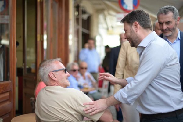 Ο Νίκος Ανδρουλάκης συνομιλεί με πολίτες στο Ρέθυμνο