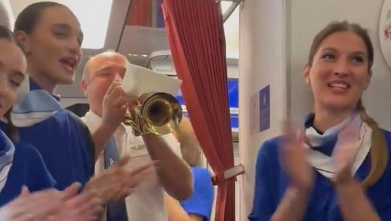 Συγκεκριμένα, λιγο πριν την απογείωση από τη Βαρκελώνη για το «Ελευθέριος Βενιζέλος», ο πιλότος της πτήσης άρχισε να παίζει τον ύμνο του Ολυμπιακού με μία τρομπέτα και όπως ήταν λογικό άπαντες μέσα στο αεροπλάνο υποδέχθηκαν με χαρά αυτή την έκπληξη.