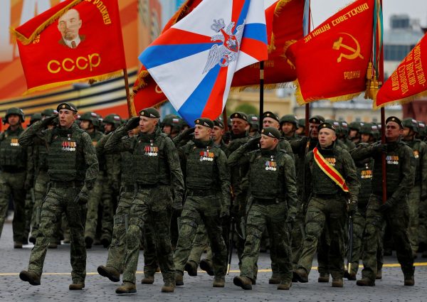 Ρωσικός στρατός παρελαύνει την Ημέρα της Νίκης κατά των δυνάμεων του Άξονα στις 9 Μαϊου στη Μόσχα.