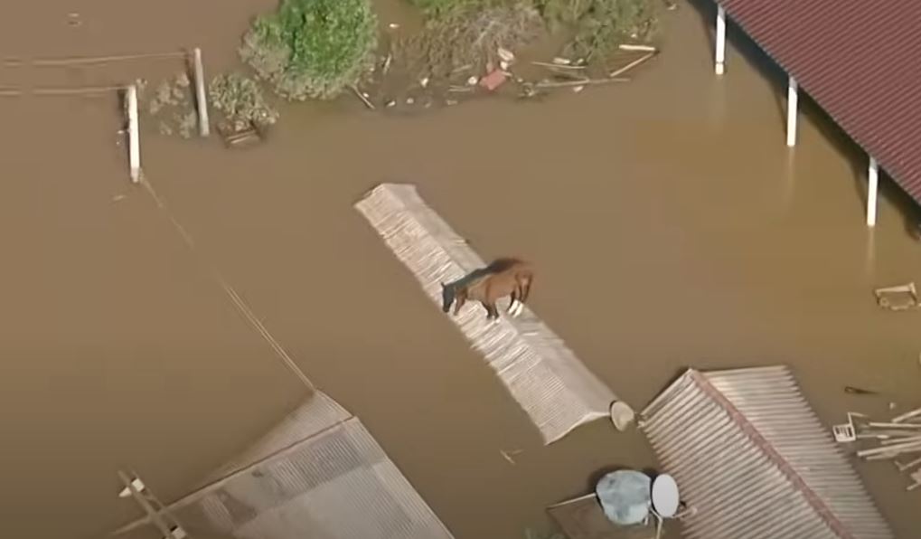 Το άλογο, πάνω στην επικλινή στέγη ενός αγροτόσπιτου, εντοπίστηκε την Τετάρτη από το ελικόπτερο ενός τηλεοπτικού δικτύου στα περίχωρα του Κανόας, μιας πόλης στα βόρεια του Πόρτο Αλέγκρε, της πρωτεύουσας της Πολιτείας Ρίο Γκράντε ντο Σουλ.