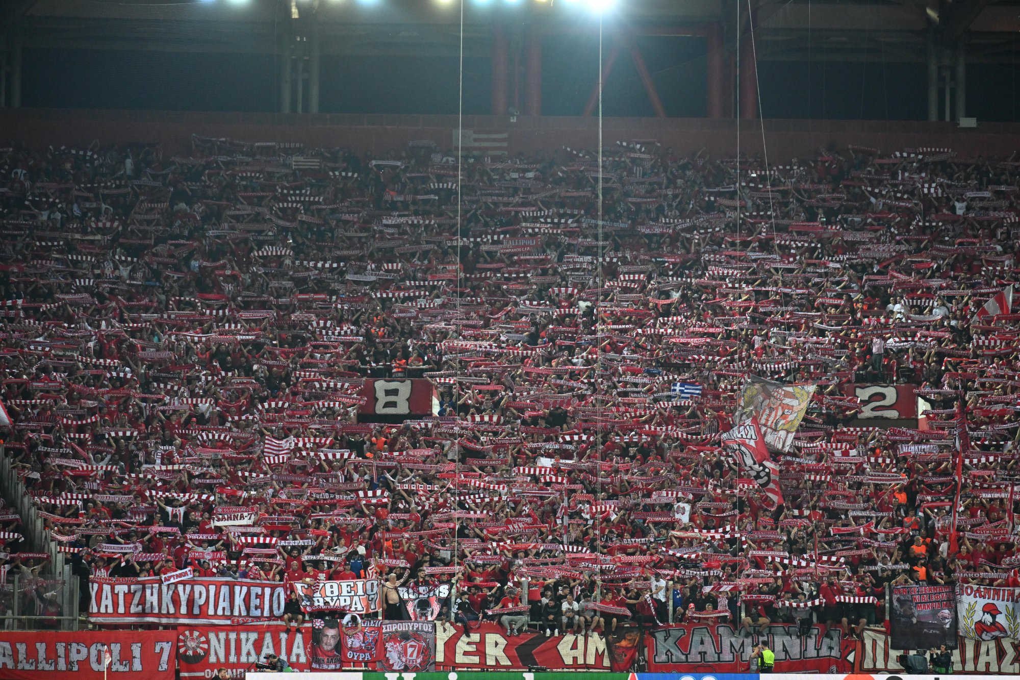 Συγκλονιστική στιγμή στο Καραϊσκάκη, με τους οπαδούς του Ολυμπιακού και της Άστον Βίλα να αλληλοχειροκροτούνται μετά την ολοκλήρωση της αναμέτρησης.