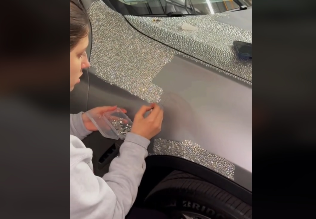 Viral έχει γίνει το βίντεο μίας γυναίκας από το Σαν Ντιέγκο των ΗΠΑ, η οποία αποφάσισε να διακοσμήσει το αυτοκίνητό της με εκατομμύρια κρύσταλλα κάνοντας όλη την εργασία με τα χέρια της.
