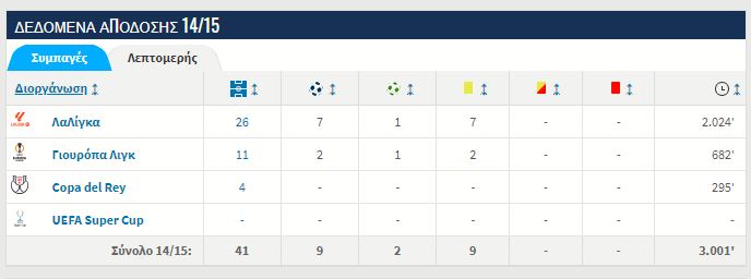 Φέτος, μέχρι στιγμής ο έμπειρος Ισπανός μέσος έχει 28 συμμετοχές, με 1 γκολ σε 1.207 λεπτά. Συνολικά στην καριέρα του έχει 582 παιχνίδια, με 55 γκολ και 22 ασίστ.