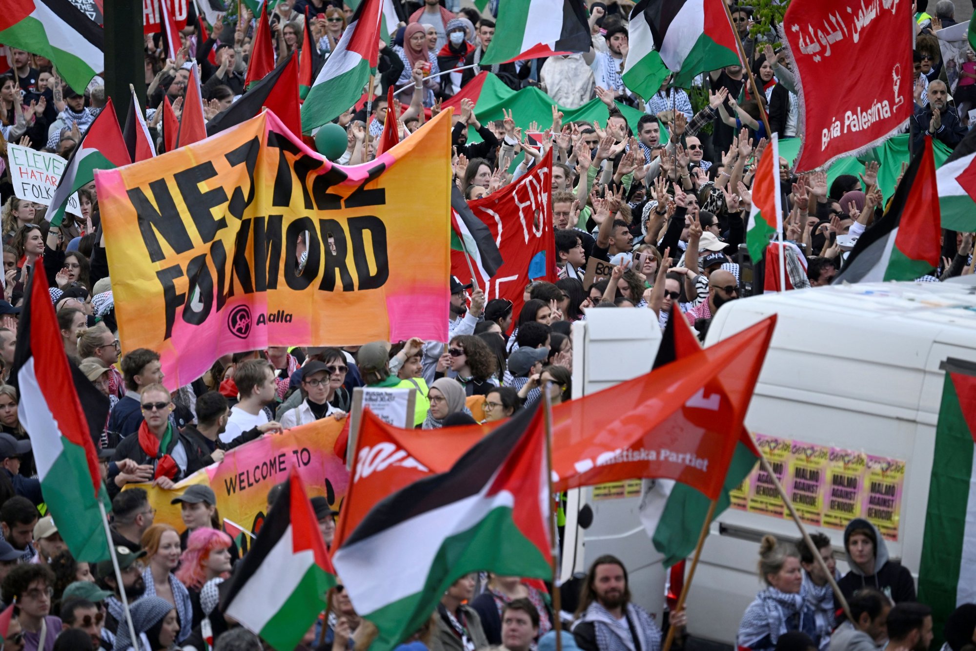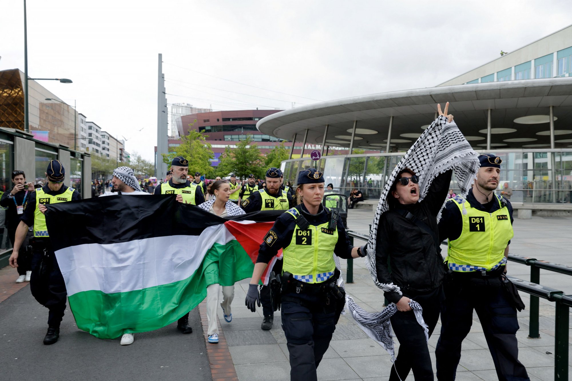 Αποδοκιμασίες και σφυρίγματα ακούγονται από το πλήθος σε πλάνα που αποτυπώνουν τις πρόβες της Ισραηλινής τραγουδίστριας, Έντεν Γκολάν που εξασκούνταν στο τραγούδι της πριν από τον τελικό της Eurovision στο Μάλμε της Σουηδίας, το Σάββατο.