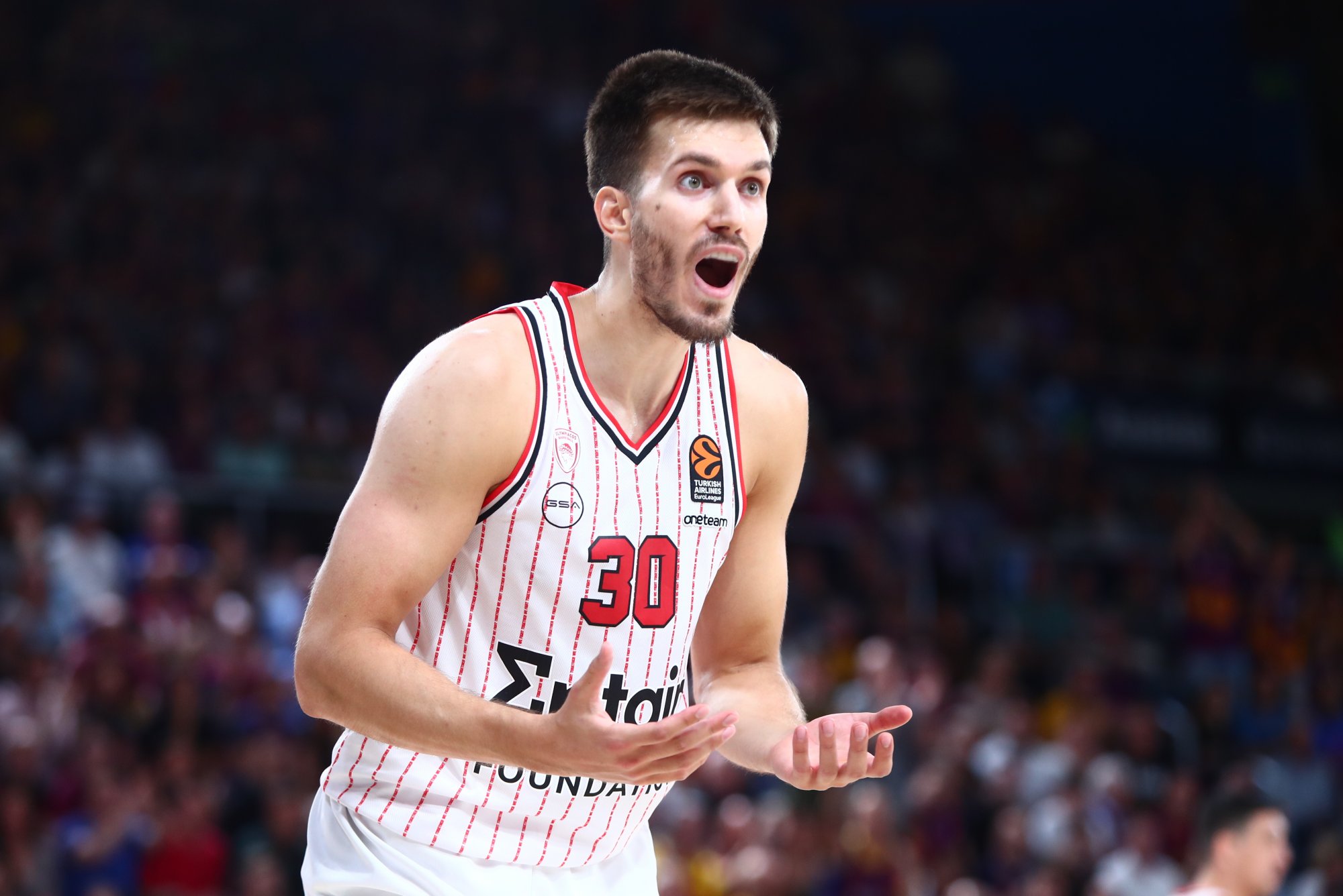 Ο Σέρβος φόργουορντ του Ολυμπιακού, 4:36 πριν την ολοκλήρωση του πρώτου ημιχρόνου, τραυματίστηκε μετά από μια επαφή που είχε με τον Μηνά Παπαγιάννη.