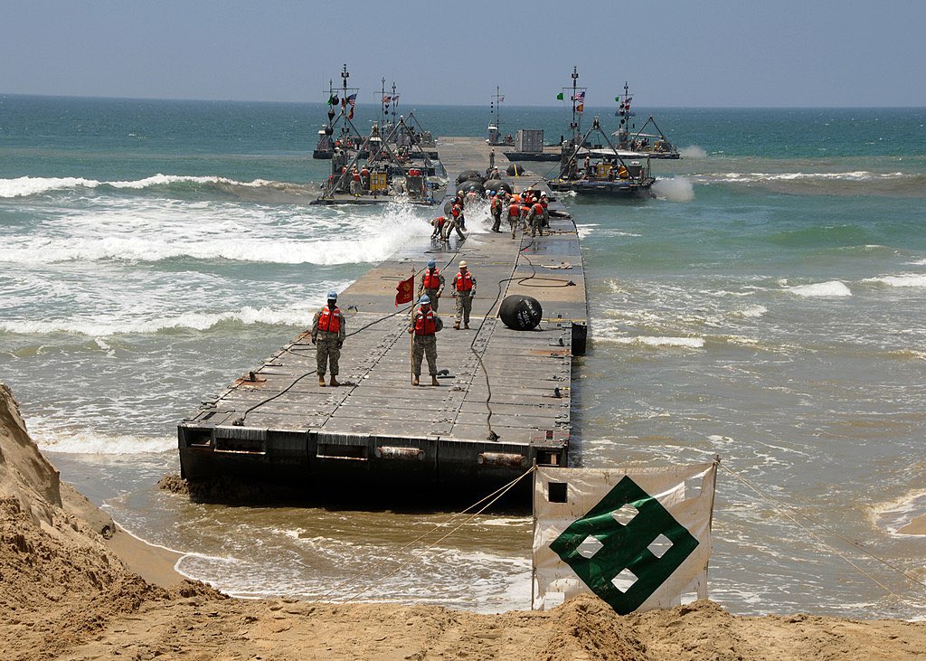 Μικρότερα οχήματα του αμερικανικού στρατού θα μεταφέρουν στη συνέχεια τα φορτηγά με τη βοήθεια σε μια προβλήτα που θα κατασκευαστεί στην ξηρά.