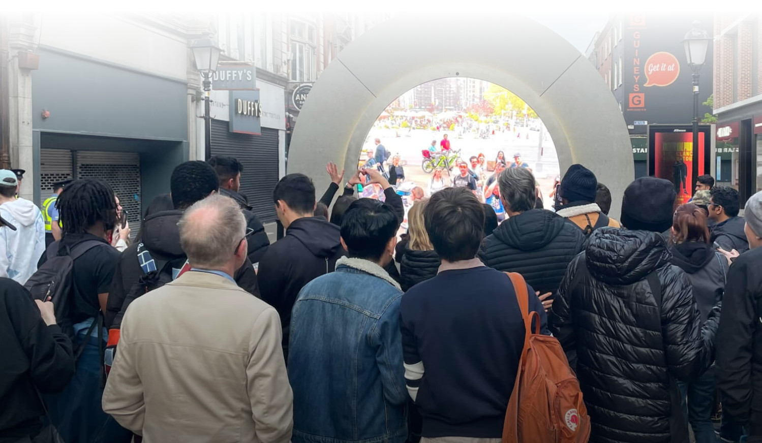 Ένα φουτουριστικό διαδραστικό γλυπτό – κάμερα που ένωνε ψηφιακά τη Νέα Υόρκη με το Δουβλίνο και φιλοδοξούσε να λειτουργήσει ως «γέφυρα προς έναν ενωμένο πλανήτη» έμελλε να κλείσει με συνοπτικές διαδικασίες μετά το χάος που προκάλεσε.