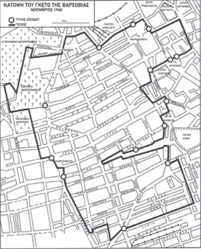 Το τείχος, τρία μέτρα ψηλό, χώριζε τους Ισραηλίτες από τους Αρίους «προς όφελος της υγείας των γερμανικών στρατευμάτων και του αρίου πληθυσμού» (έκθεση Στρουπ). Κατασκευάσθηκε από τους ίδιους τους Εβραίους, που είχαν σχηματίσει ομάδες εργασίας, σύμφωνα με τις οδηγίες της εταιρείας που είχε αναλάβει την εκτέλεση του έργου από τις 26 Νοεμβρίου 1940. Εξακόσιες χιλιάδες άτομα που βρέθηκαν κλεισμένα στη φυλακή αυτή είχαν λιγοστές πιθανότητες διαφυγής: μια απ’ αυτές ήταν τα τραμ, που διέσχιζαν το γκέτο κατά μήκος της οδού Λέζνο, και η δεύτερη οι υπόνομοι, που αν τους ακολουθούσαν, μπορούσαν να φθάσουν στην πολωνική πλευρά της πόλεως.
