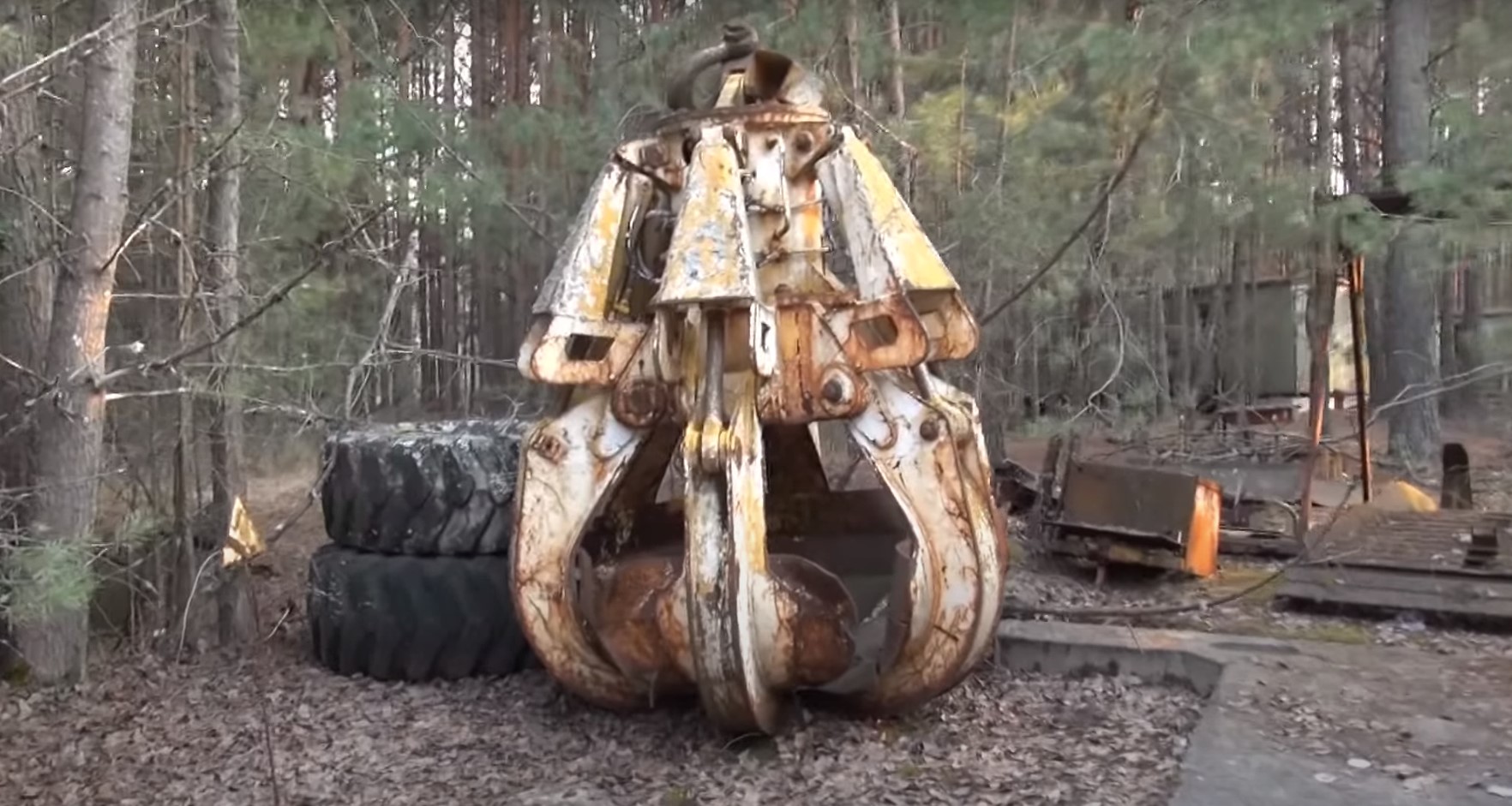 Βουτηγμένο στη ραδιενέργεια, μία τεράστια σιδερένια δαγκάνα δεσπόζει στο δάσος της πόλης Πρίπιατ στα εδάφη της Ουκρανίας, όπου εγκαταλείφθηκε κατά τις προσπάθειες καθαρισμού μετά το πυρηνικό δυστύχημα του Τσερνόμπιλ το 1986.