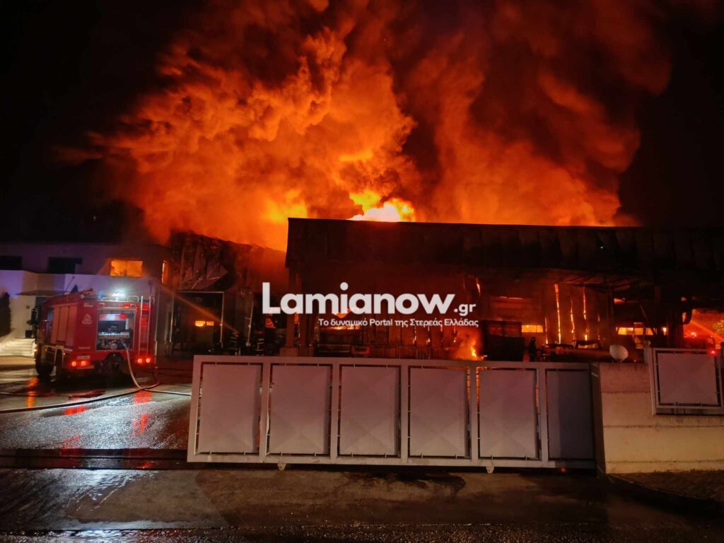 Συναγερμός στην Πυροσβεστική Υπηρεσίας Λαμίας μετά τη μεγάλη πυρκαγιά στις εγκαταστάσεις της εταιρείας «Γιαννίτσης».
