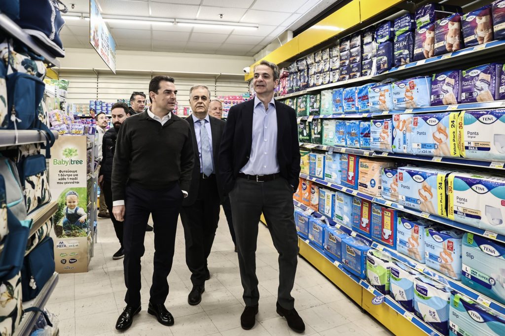Επίσκεψη του πρωθυπουργού Κυριάκου Μητσοτάκη σε κατάστημα αλυσίδας σούπερ μάρκετ
