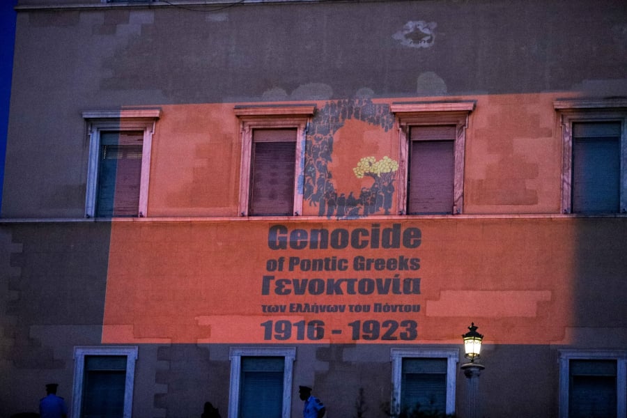 Την Ημέρα Μνήμης της Γενοκτονίας των Ελλήνων του Πόντου τίμησε απόψε η Βουλή των Ελλήνων με την φωταγώγηση της πρόσοψης του κτιρίου της στο κόκκινο και το μαύρο, σύμβολα του αίματος και του πένθους για τα 353.000 αθώα θύματα.