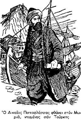 Είνε ακριβώς το σημείον όπου διασταυρώνονται ο χριστιανισμός με τον ελληνισμό. Αντίρροπες δυνάμεις, όχι ξένες, είχανε πάντα το αυθεντικότερο γνώρισμα κάθε μεγάλης αντιδικίας: ένα ποσοστό εσωτερικής συγγένειας. Μέσα στην καταχνιά τού ιστορικού γίγνεσθαι ψαχουλεύονται καθώς δυο τυφλές φυσικές δυνάμεις που γυρεύουν να έρθουν σ’ επαφή, ν’ αναμετρηθούν ή να ζευγαρώσουν. Υπάρχει ένα στοιχείο αγωνίας στην αμοιβαία αυτή αναζήτηση. Υπάρχει ακόμα η λαχτάρα για την κατάκτηση του κόσμου, μια υψηλή ξεσυνέρια (σ.σ. άμιλλα, ανταγωνισμός). Υπάρχει, τέλος, η διαίσθηση για κάτι το τελειωτικά ασυμβίβαστο. Η πλάστιγγα γέρνει πότε από δω και πότε από κει, ο ήρωας γίνεται πότε περισσότερο ιερωμένος και πότε περισσότερο πολεμιστής. Δεν πρόκειται τώρα πια για τον Παπαφλέσσα. Πρόκειται για έναν οποιοδήποτε ανώνυμο ρασοφόρο μέσα στους τέσσερες αιώνες της δουλείας, ή για έναν οποιοδήποτε ταπεινό δούλο του Θεού.