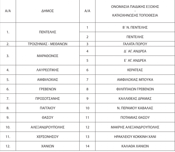 Με κοινή Υπουργική Απόφαση των υπουργών Εθνικής Οικονομίας και Οικονομικών, Εσωτερικών και Κοινωνικής Συνοχής και Οικογένειας αποφασίστηκε ότι για το έτος 2024 η οργάνωση και η λειτουργία των Κατασκηνώσεων του Κρατικού Προγράμματος ανατίθεται στους παρακάτω Δήμους ως ακολούθως: