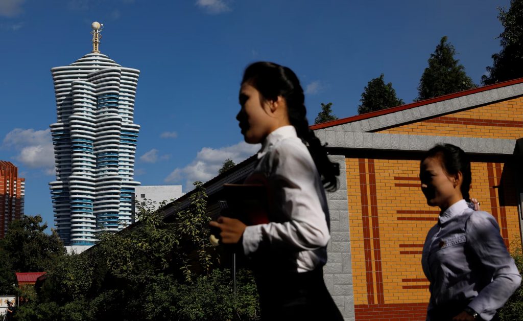 Η κομμουνιστική αισθητική της απομονωμένης χώρας ανανεώνεται με φουτουριστικούς ουρανοξύστες που δίνουν μια ψευδαίσθηση πλούτου.