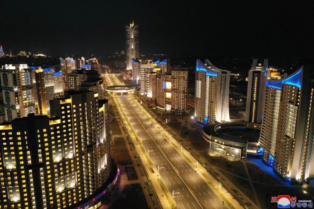Νυχτερινή άποψη της συνοικίας Σόνγκχουα στην ανατολική Πιονγκγιάνγκ (KCNA via Reuters)