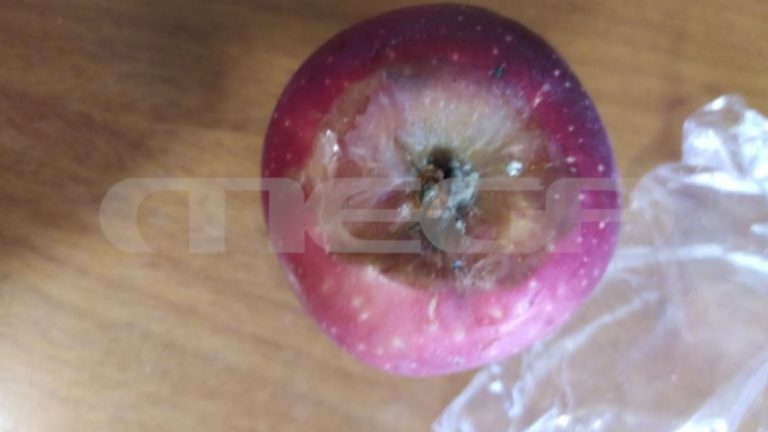 «Η πρώτη φωτογραφία είναι μήλο. Έτσι παραδόθηκε στο παιδί. Πριν έξι μήνες. Είναι σάπιο, είναι ένα σάπιο μήλο το οποίο το έβαλαν μέσα για να το φάει ένα παιδάκι», είπε στο Live News ο πατέρας που έκανε την καταγγελία.