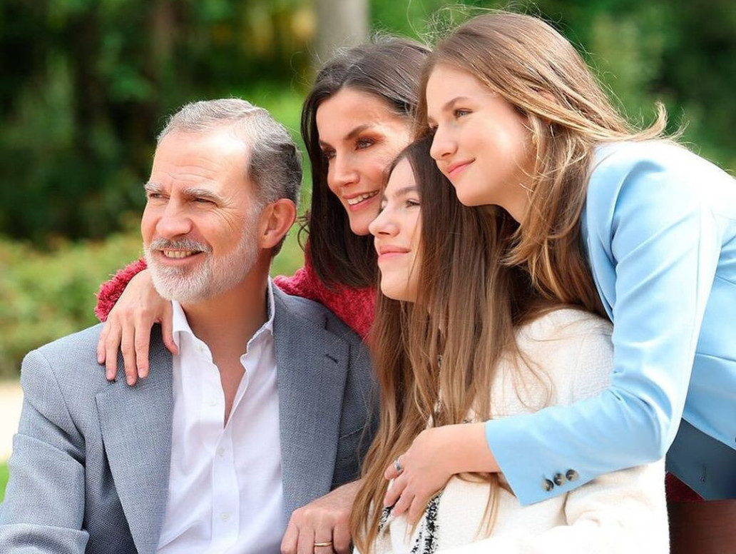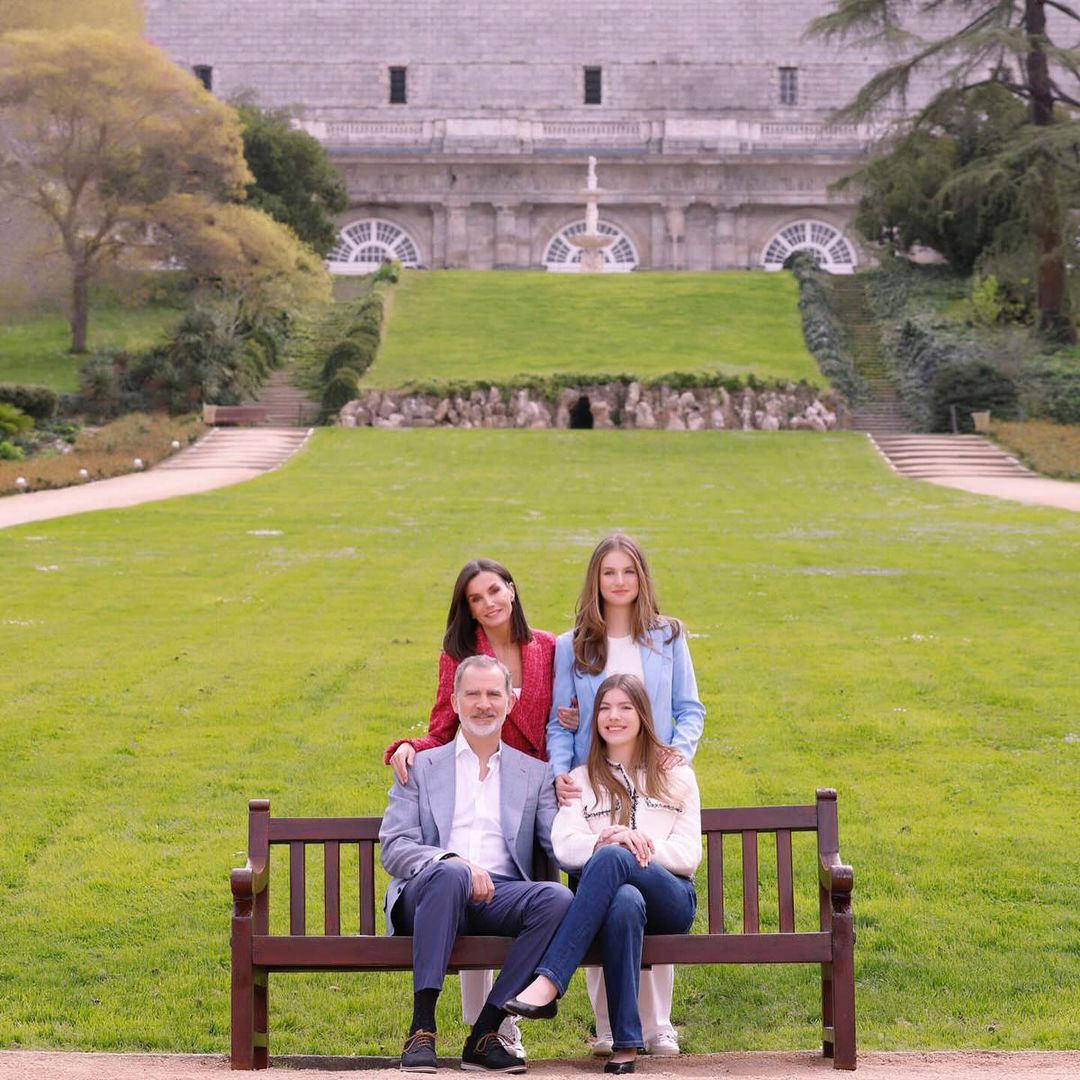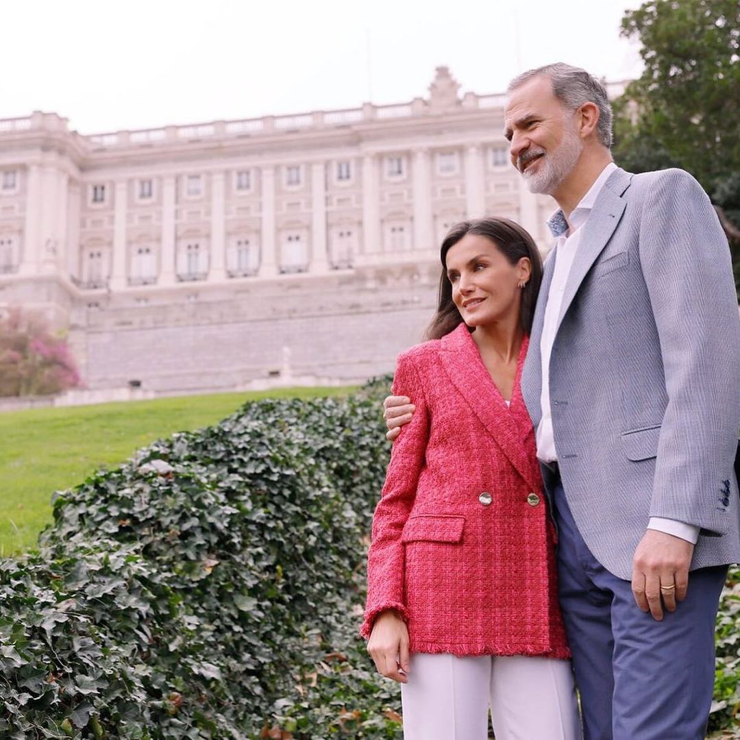 Για τη φωτογράφιση, η βασίλισσα Λετίθια επέλεξε μία casual εμφάνιση με λευκά sneakers, λευκό παντελόνι και φούξια μπλέιζερ από τα Mango που κοστίζει 53.99. Η οικογένεια ποζάρει σε ένα ειδυλλιακό σκηνικό. Φαίνεται ότι οι εικόνες τραβήχτηκαν στο Παλάτι της Ζαρζουέλα στα περίχωρα της Μαδρίτης, όπου κατοικούν.