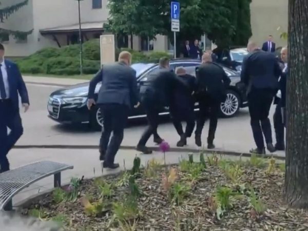 Ο σλοβάκος πρωθυπουργός μόλις έχει δεχτεί τους πυροβολισμούς και κυριολεκτικά σύρεται από τους άνδρες ασφαλείας προς το υπηρεσιακό του αυτοκίνητο (εικόνα από βίντεο)