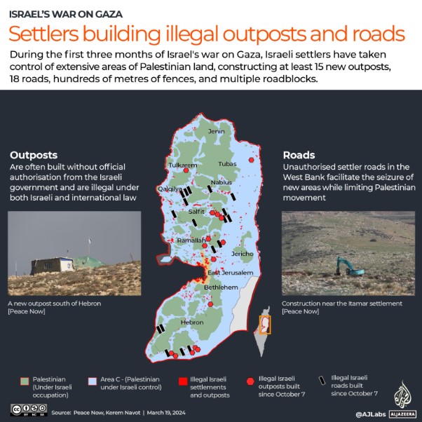 «Η θέση μας για τους εποικισμούς, για τη νομιμότητα των εποικισμών βάσει του διεθνούς δικαίου, παραμένει σταθερή και η ίδια. Πιστεύουμε ότι οποιαδήποτε πολιτική ενθαρρύνει περισσότερους εποικισμούς ή περισσότερους εποίκους μας απομακρύνει περισσότερο από την επίτευξη της λύσης των δύο κρατών», πρόσθεσε.