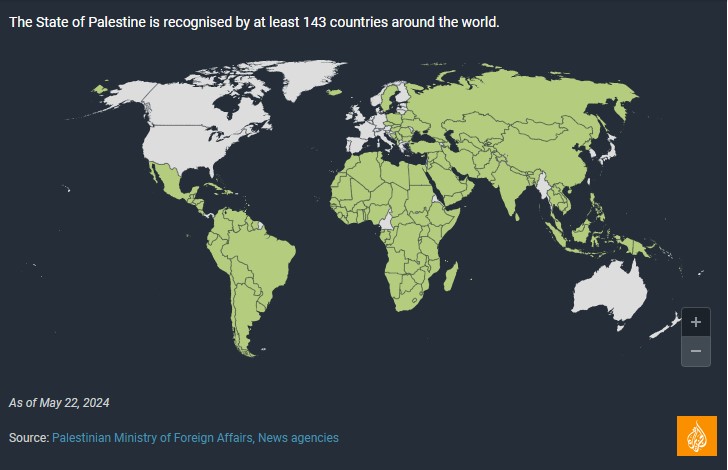 Νορβηγία, Ισπανία και Ιρλανδία ανακοίνωσαν ότι από τις 28 Μαΐου θα αναγνωρίσουν την κρατική υπόσταση της Παλαιστίνης. Το Ισραήλ ανακάλεσε τους πρεσβευτές του από τις τρεις προαναφερόμενες χώρες.