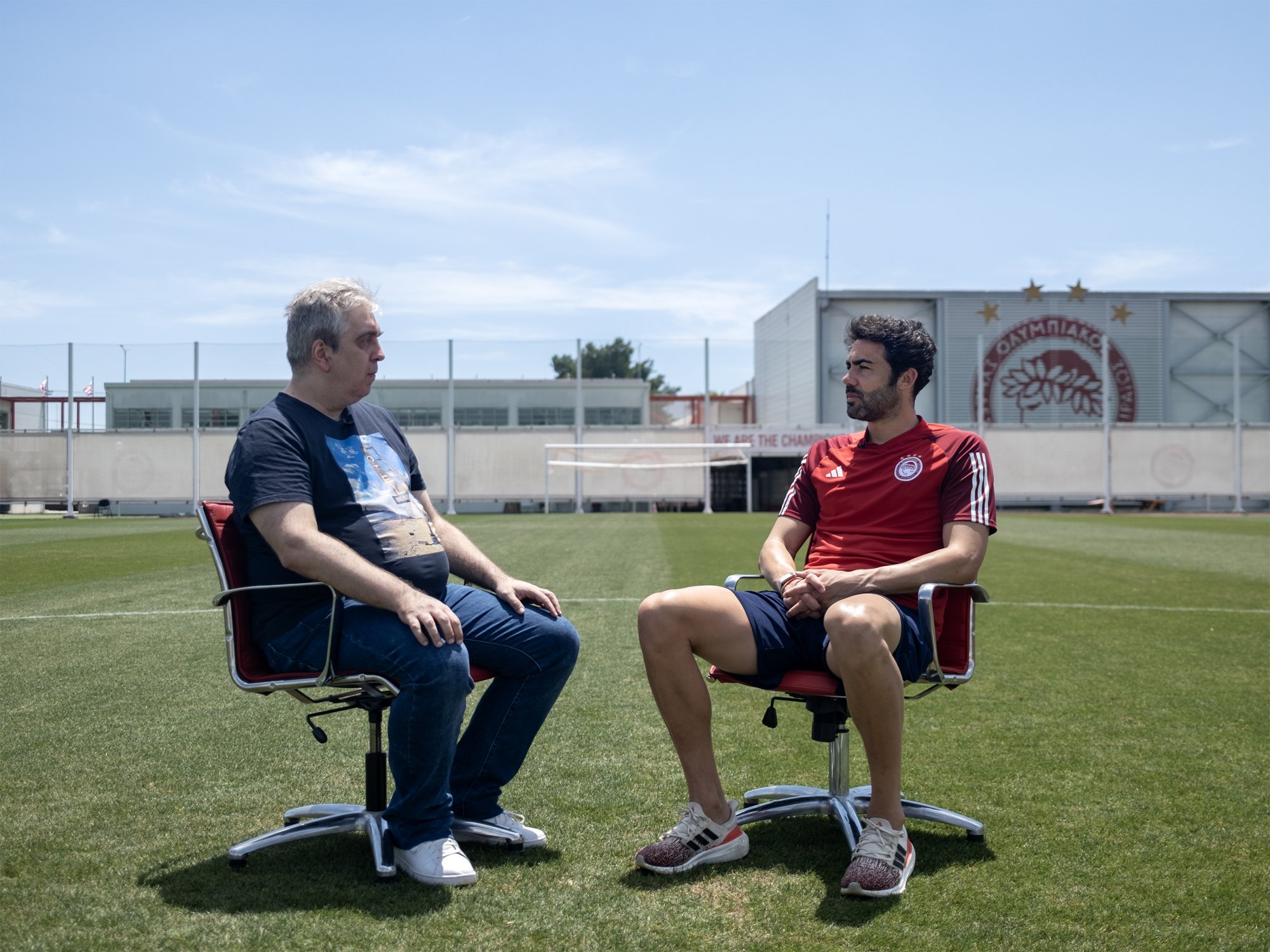 O Βιθέντε Ιμπόρα με τον δημοσιογράφο του in Γιώργο Μαζιά στο προπονητικό Κέντρο στον Ρέντη