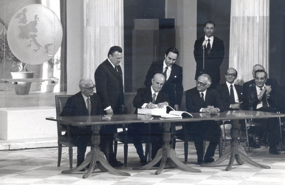 Με την σημερινή Συμφωνία η Ελλάς αποδέχεται την συμμετοχή της στην διαδικασία της ενοποιήσεως της Ευρώπης, που συντελείται με την ακατανίκητη δύναμη φυσικού φαινομένου. Μπορεί να υπάρχουν διαφορές απόψεων ως προς την έκταση, την μορφή, τις διαδικασίες και τον ρυθμό πραγματοποιήσεώς της. Κανένας όμως δεν μπορεί να αρνηθεί την ιστορική της αναγκαιότητα. Αν τα κράτη της ηπείρου μας δεν συνενώσουν τις υλικές και πνευματικές τους δυνάμεις σε μια οργανική ενότητα, θα παραμερισθούν μοιραία στο περιθώριο της Ιστορίας. Και η Ευρώπη, που κυριαρχούσε στον κόσμο μέχρι και τις αρχές αυτού του αιώνος, θα μεταβληθεί σε ουραγό και θα εκτεθεί σε κινδύνους.