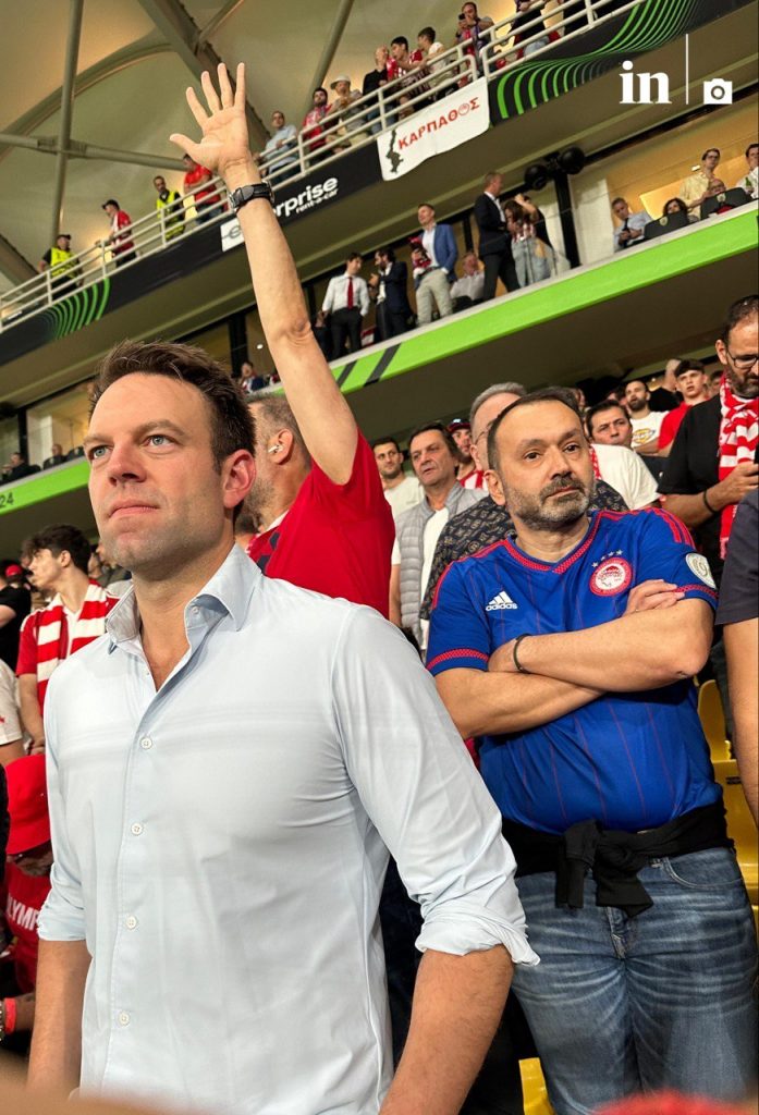 Στην «ΑΕΚ Arena» βρίσκεται ο πρόεδρος του ΣΥΡΙΖΑ – Προοδευτική Συμμαχία, Στέφανος Κασσελάκης για να παρακολουθήσει από κοντά τον τελικό του Europa Conference League μεταξύ του Ολυμπιακού και της Φιορεντίνα.