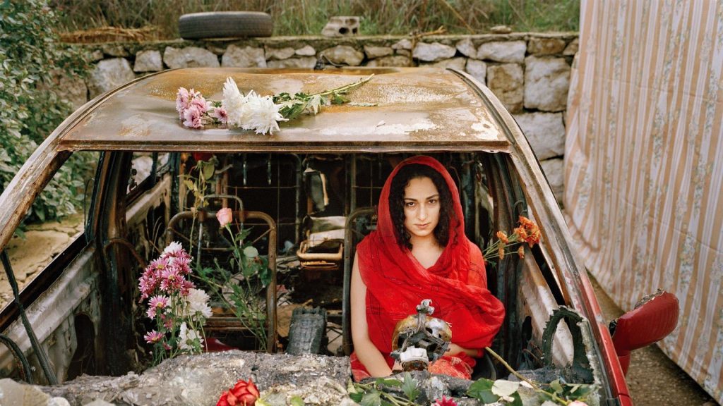 Μία κάθεται στο γεμάτο λουλούδια κουφάρι του αυτοκινήτου της, το οποίο κάηκε κατά τη διάρκεια αντικυβερνητικών διαδηλώσεων- μια άλλη εμφανίζεται με τα μάτια κλειστά, απολαμβάνοντας τον ήλιο, καθώς κάθεται σε μια κόκκινη πολυθρόνα περιτριγυρισμένη από σπασμένα γυαλιά σε μια ημιτελή βεράντα κτιρίου, με την ανόθευτη θέα της Μεσογείου πίσω της.