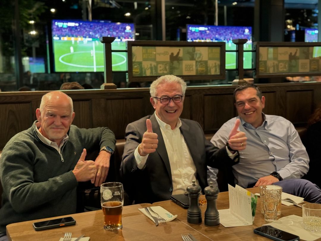 Παρότι οι δύο πρώην πρωθυπουργοί είναι φίλαθλοι του Παναθηναϊκού, αυτό δεν τους εμπόδισε να παρακολουθήσουν τους ποδοσφαιριστές του Χοσέ Λουίς Μεντιλίμπαρ -μαζί με τον φίλο των ερυθρολεύκων Θεόδωρο Ρουσόπουλο- στον κρίσιμο τελικό του Europa Conference League, που τελικώς κατέκτησαν στην παράταση, νικώντας τη Φιορεντίνα με γκολ του Ελ Κααμπί.