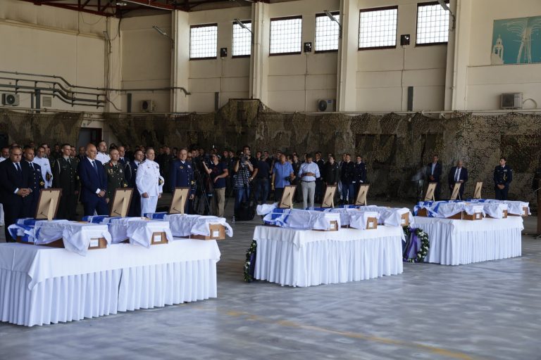 Η υποδοχή των λείψανων έγινε με όλες τις προβλεπόμενες στρατιωτικές τιμές στην Αεροπορική Βάση της Ελευσίνας