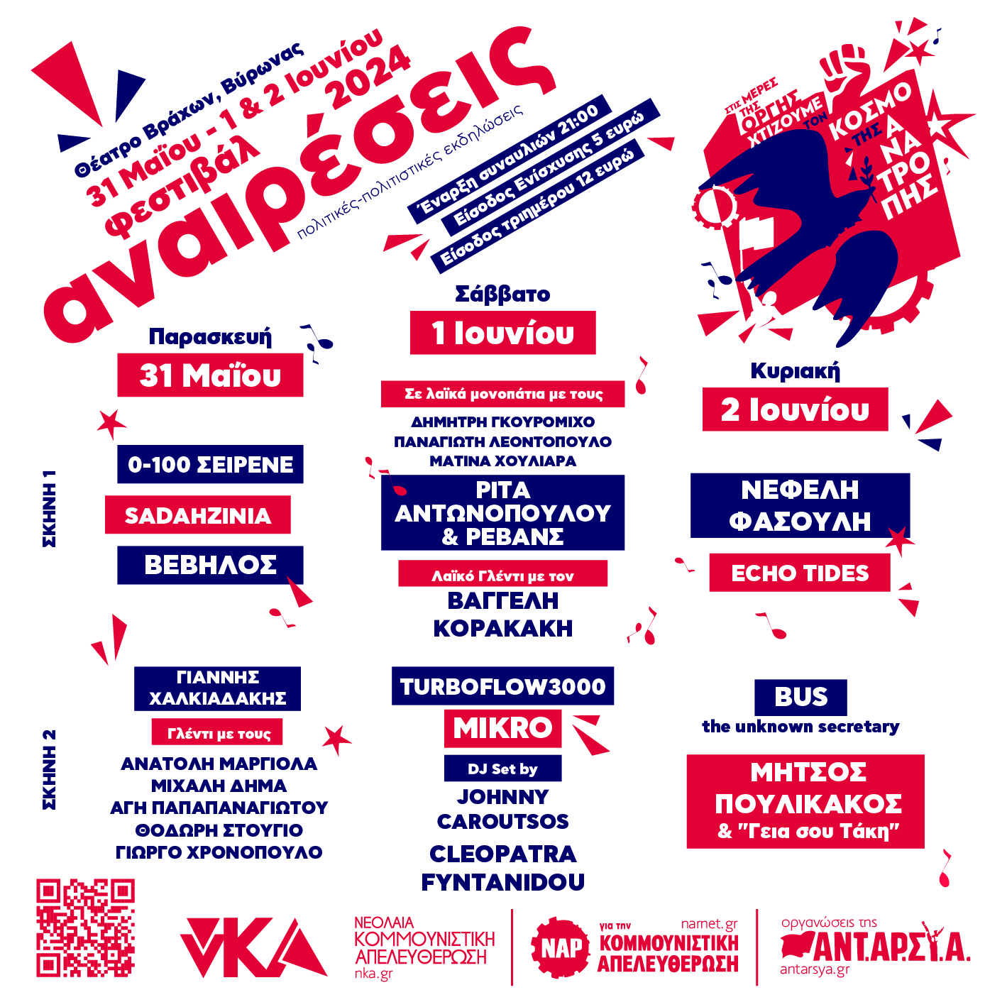 Το φεστιβάλ Αναιρέσεις οργανώνεται από τη Νεολαία Κομμουνιστική Απελευθέρωση και το ΝΑΡ για την κομμουνιστική απελευθέρωση, οργανώσεις της ΑΝΤΑΡΣΥΑ.