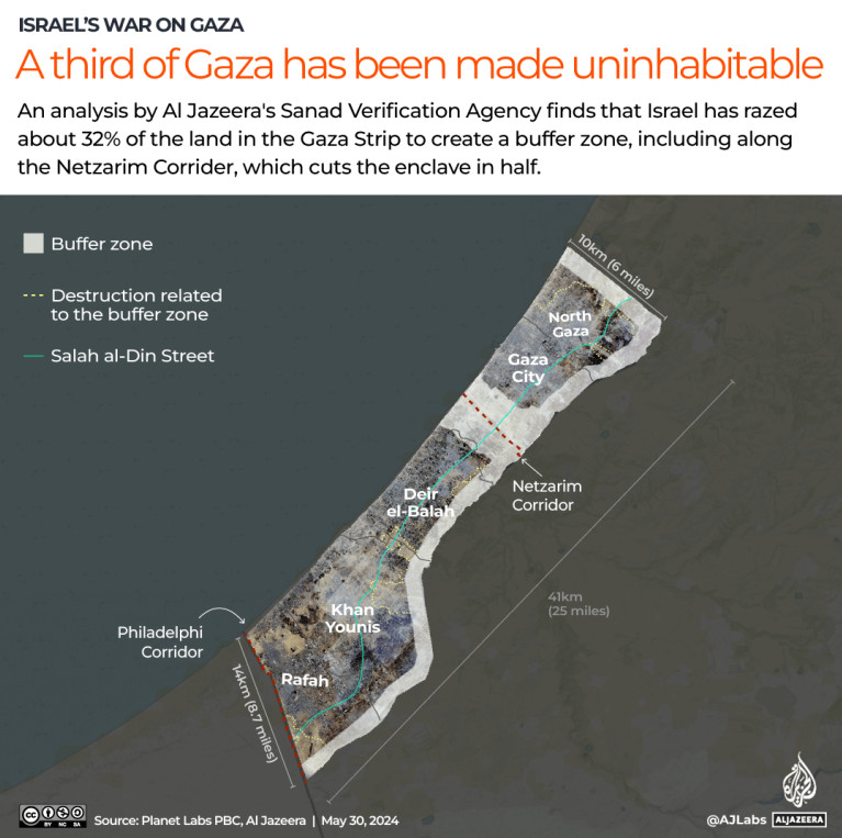 Όπως αναφέρεται, ο ισραηλινός στρατός έχει τον πλήρη έλεγχο του διαδρόμου Φιλαδέλφειας και τώρα κατεδαφίζει συστηματικά σπίτια στο ανατολικό τμήμα της πόλης Ράφα.