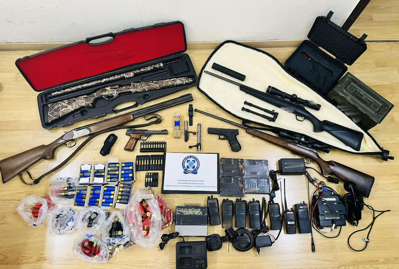 «Από την Υποδιεύθυνση Κρατικής Ασφάλειας της Διεύθυνσης Ασφάλειας Αττικής, εντοπίστηκε, πρωινές ώρες της 31-5-2024 στο Κερατσίνι, 61χρονος αλλοδαπός και συνελήφθη για παράβαση της νομοθεσίας περί όπλων, διότι στην οικία του βρέθηκαν και κατασχέθηκαν (4) τυφέκια, (2) πιστόλια, πλήθος φυσιγγίων διαφόρων διαμετρημάτων, (3) διόπτρες, σιγαστήρας και (9) φορητοί ασύρματοι πομποδέκτες, για τα οποία οι Σουηδικές Αρχές είχαν ανακαλέσει την άδεια κατοχής του, καθότι θεωρούνταν ύποπτος για τέλεση αδικημάτων.