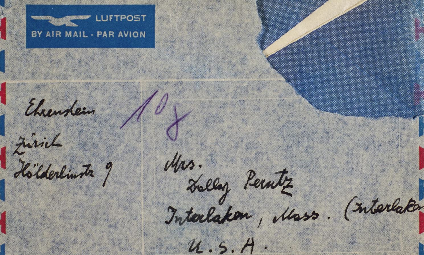 Το γράμμα βρίσκεται ακόμη στον φάκελο που έστειλε ο Ehrenstein με το αεροπορικό ταχυδρομείο στη γεννημένη στην Τσεχία καλλιτέχνιδα Dolly Perutz στη Μασαχουσέτη το 1948. Φωτογραφία: Sotheby’s