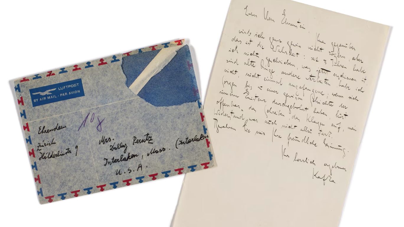 Η επιστολή θεωρείται ότι είναι η απάντηση του Κάφκα στο αίτημα του Χέρενσταϊν να συμβάλει σε ένα λογοτεχνικό περιοδικό. Φωτογραφία: Sotheby’s