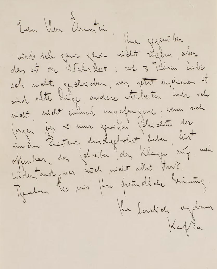Μια σπάνια επιστολή του Φραντς Κάφκα στον εκδότη του δείχνει τον αγώνα του να βάλει την πένα του στο χαρτί, ειδικά καθώς η υγεία του επιδεινωνόταν.