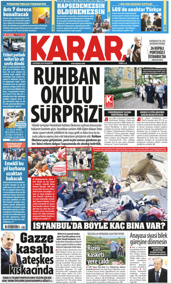 Mε τίτλο «Έκπληξη στη Θεολογική Σχολή» το πρωτοσέλιδο της τουρκικής εφημερίδας Karar