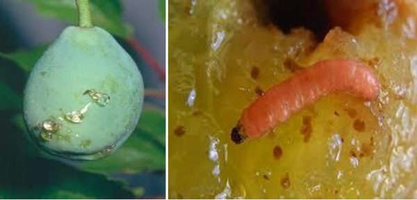 Προσβολή και προνύμφη καρπόκαψας της δαμασκηνιάς