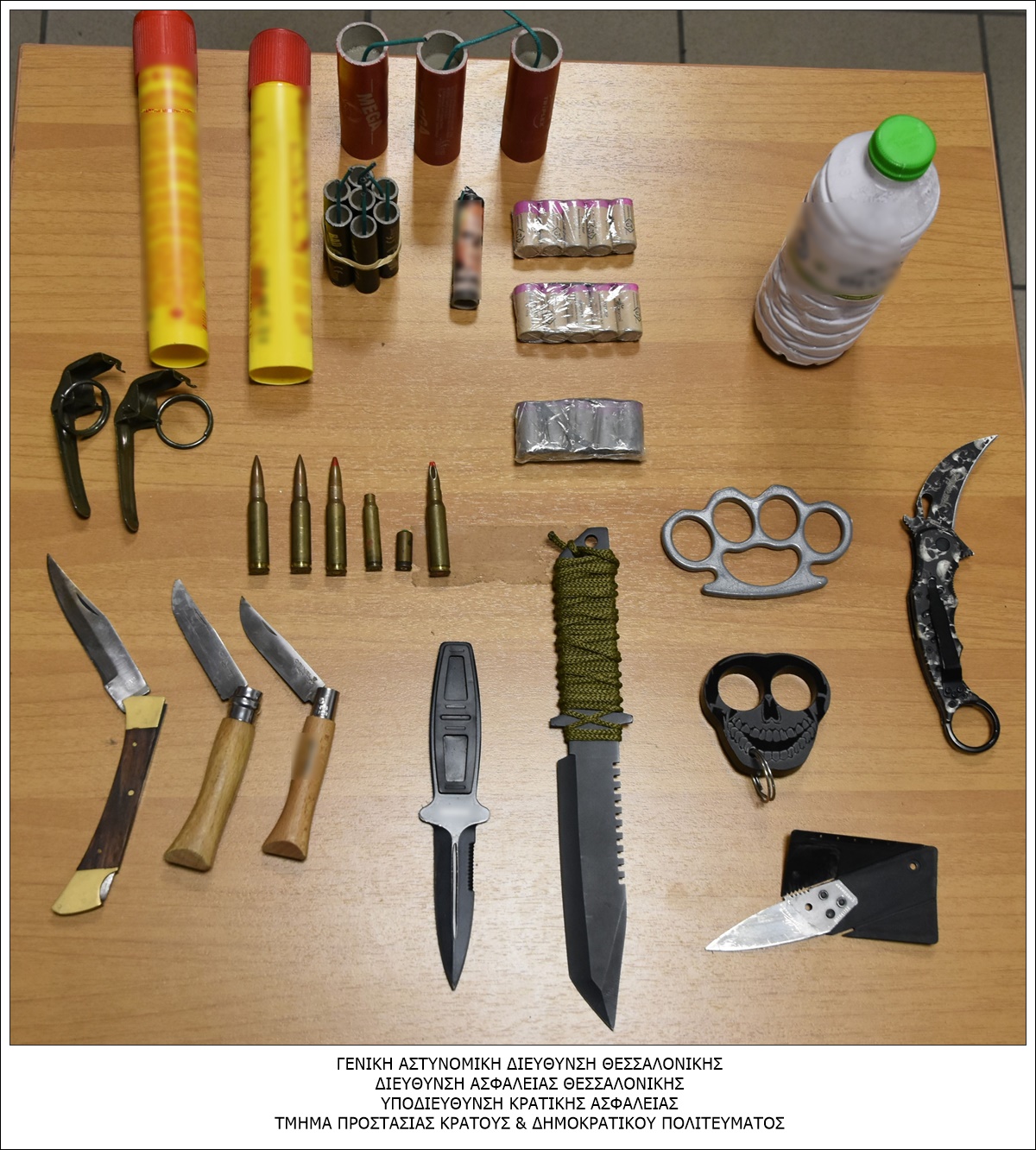 Λίγο αργότερα, με τη συνδρομή αστυνομικών της Διεύθυνσης Άμεσης Δράσης Θεσσαλονίκης, εντοπίστηκε και συνελήφθη, ενώ σε έρευνα της οικίας του βρέθηκαν και κατασχέθηκαν: