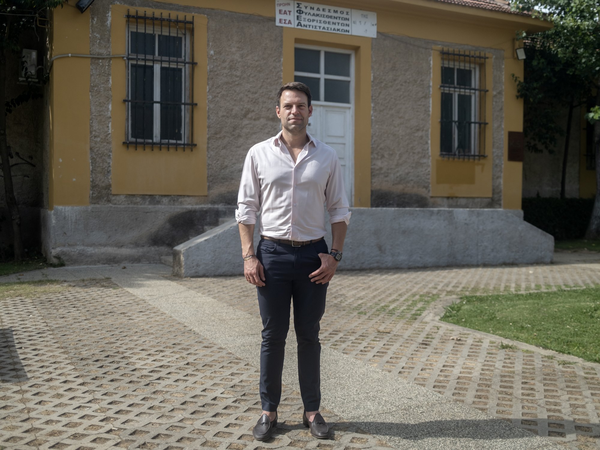 Η συνέντευξη έγινε σε ένα σημείο έντονα φορτισμένο ιστορικά: το Πάρκο Ελευθερίας, το πρώην ΕΑΤ- ΕΣΑ. Εκεί που κάποτε βασανίστηκαν εκατοντάδες πολίτες στα χρόνια της Δικτατορίας 1967- 74 και που σήμερα λειτουργεί ως υπόμνηση της φρίκης, ως υπενθύμιση όλων εκείνων που δεν υποτάχτηκαν στην τυραννία και ως συλλογική εγρήγορση για την υπεράσπιση της δημοκρατίας.