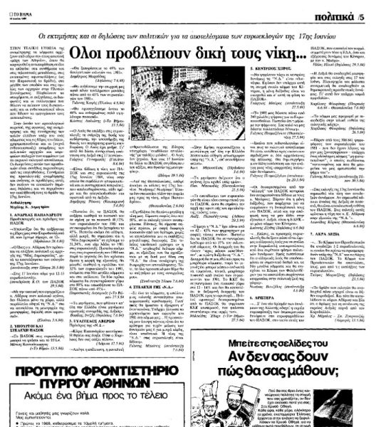 — Θα προσεγγίσουμε άνετα το 44% και ενδεχομένως πολύ υψηλότερα ποσοστά (Κώστας Λαλιώτης, «Το Βήμα» 13.5.84).