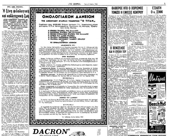 «ΤΟ ΒΗΜΑ», 8.5.1962, Ιστορικό Αρχείο «ΤΟ ΒΗΜΑ» & «ΤΑ ΝΕΑ»