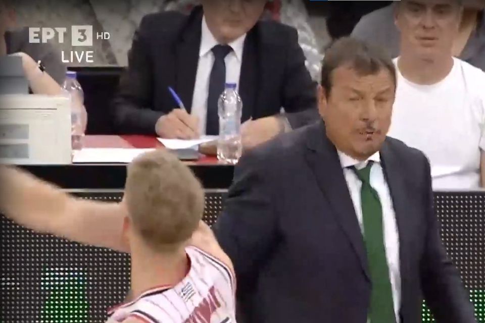 Ο Εργκίν Αταμάν αποβλήθηκε λίγο πριν την λήξη του δεύτερου τελικού μεταξύ Ολυμπιακού και Παναθηναϊκού, με τον Τόμας Γουόκαπ να δείχνει στον προπονητή τον πράσινων τον δρόμο προς τα αποδυτήρια